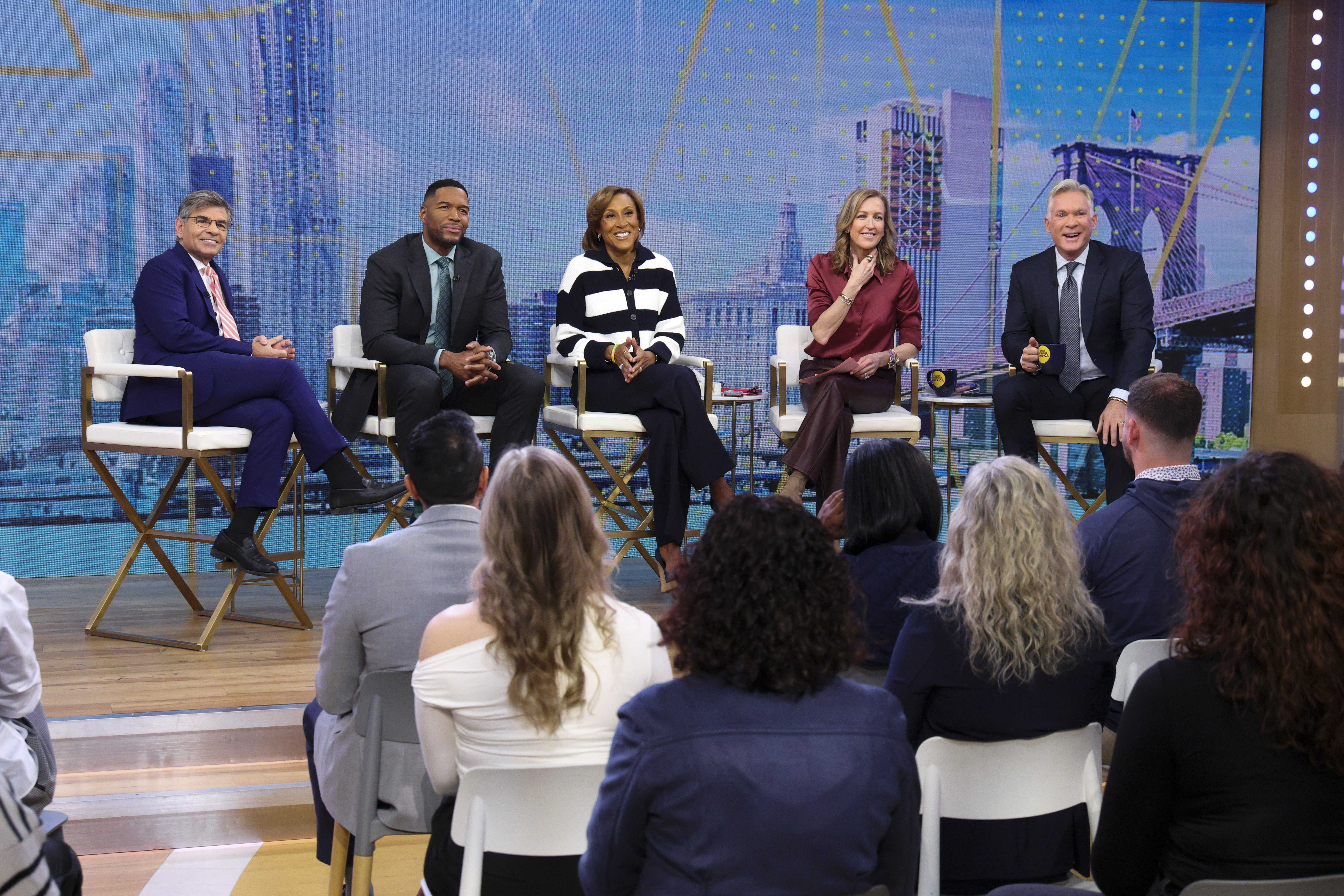 GEORGE STEPHANOPOULOS, MICHAEL STRAHAN, ROBIN ROBERTS, LARA SPENCER, SAM CHAMPION