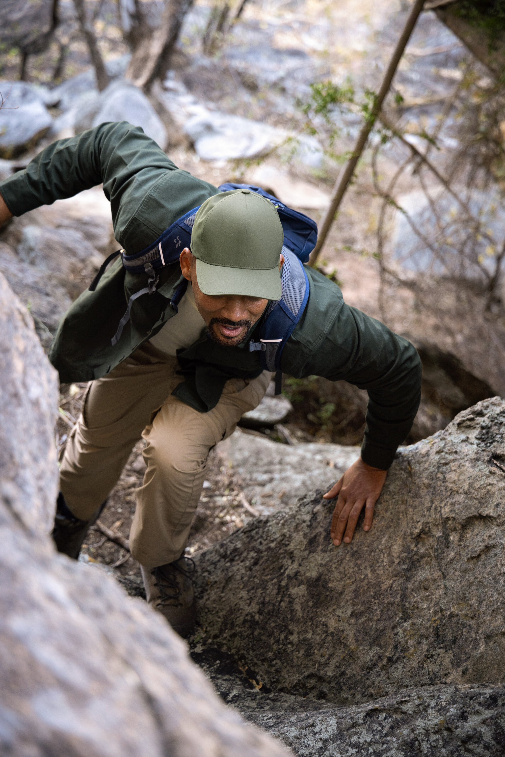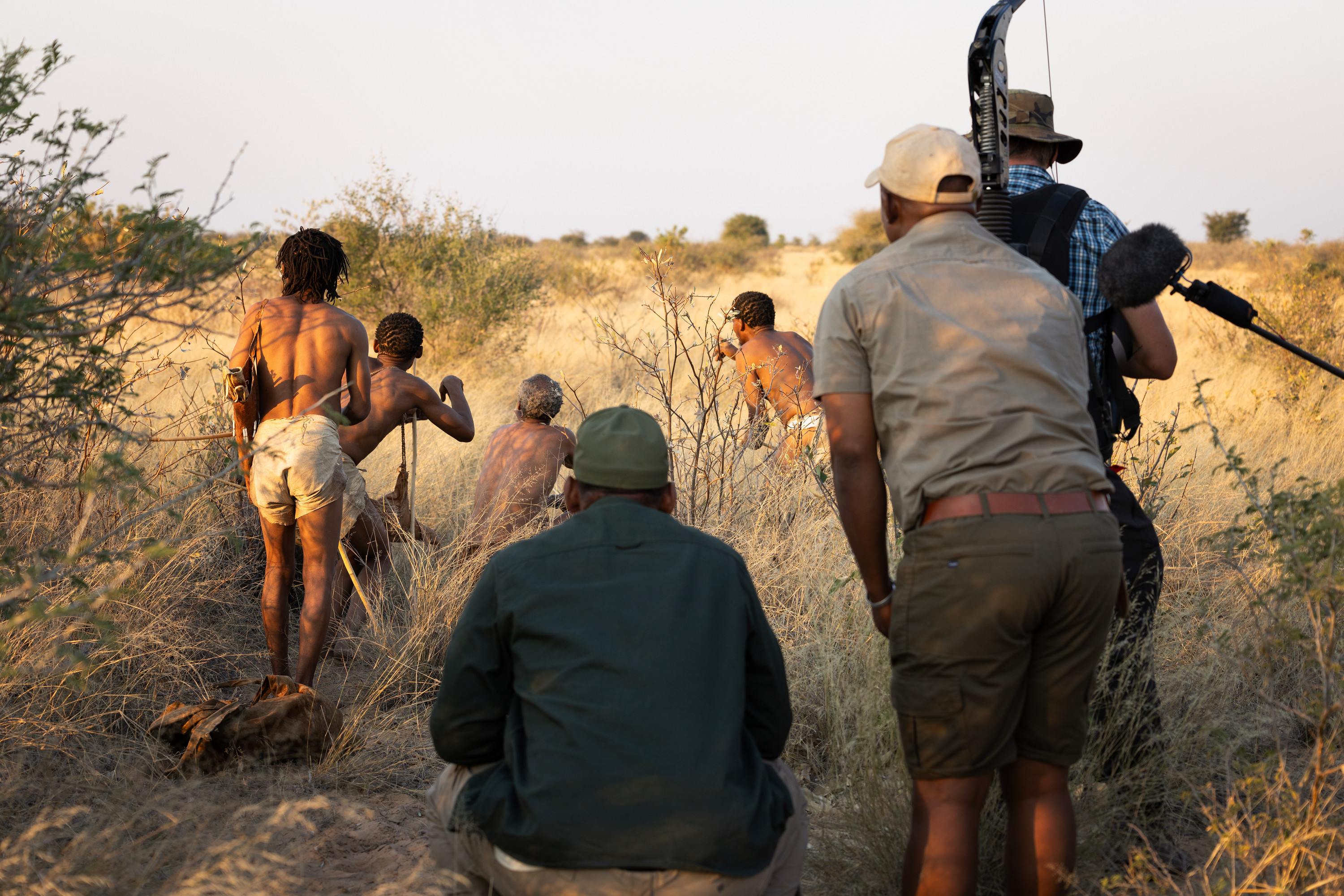 Member of the Nharo San community, Qhoeta Xhoema, observing a bush. (credit: National Geographic/Dionne Bromfield)Posted 12/10/25106_TheKalahariDesert_PoletoPoleWithWillSmith_03.jpg